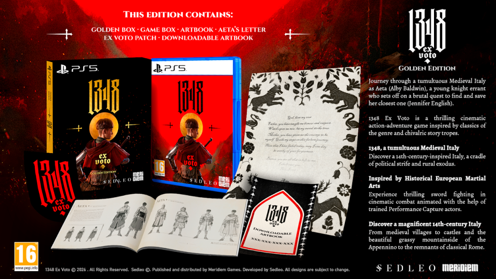 Meridiem ha sido la responsable del diseño y creación de estas ediciones físicas: 1348 Ex Voto – Limited Edition, que incluye el juego de PlayStation 5, una carta de Aeta y contenido descargable y la Golden Edition, que incluye todo el contenido de la Edición Limitada y añade una funda especial, un artbook y un parche.