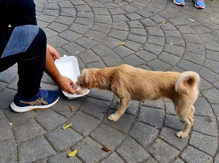 Un humano recibe el alimento y decide si se lo come o no, pero los perritos en situación de calle, aun con desconfianza, olfatean, prueban y devoran el alimento. Ellos esperan que terminen de comer, le ofrecen agua fresca, recogen el plato y con el corazón arrugado, pero cargado de satisfacción por hacer la diferencia, siguen, para beneficiar a muchos más.