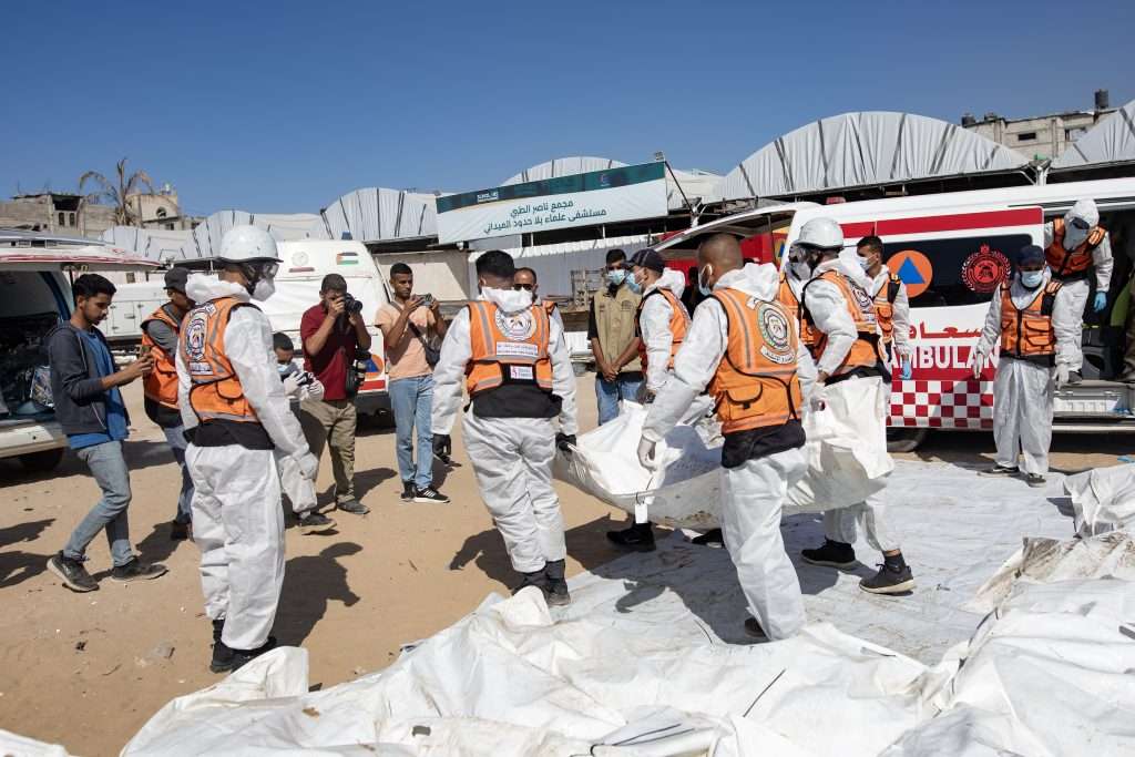 El personal del despacho sanitario denunció que la mayoría de los cuerpos mostraban quemaduras, amputaciones y quemaduras en las manos y los ojos. “En varios casos, los rostros están tan desfigurados que las familias no podrán identificarlos”, informó la agencia palestina de noticias Wafa.