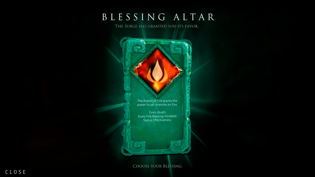 Al igual que Hades, la completación de una habitación significa la toma de una decisión, en este caso, una mejora que puede variar entre más daño, más vida, y otras opciones más experimentales, como daño elemental, y hasta la manera en la que el jugador puede curarse durante una batalla. Así que aunque cada nueva habitación sea más difícil, este nivel de progresión hace que el jugador también se vaya volviendo más poderoso.