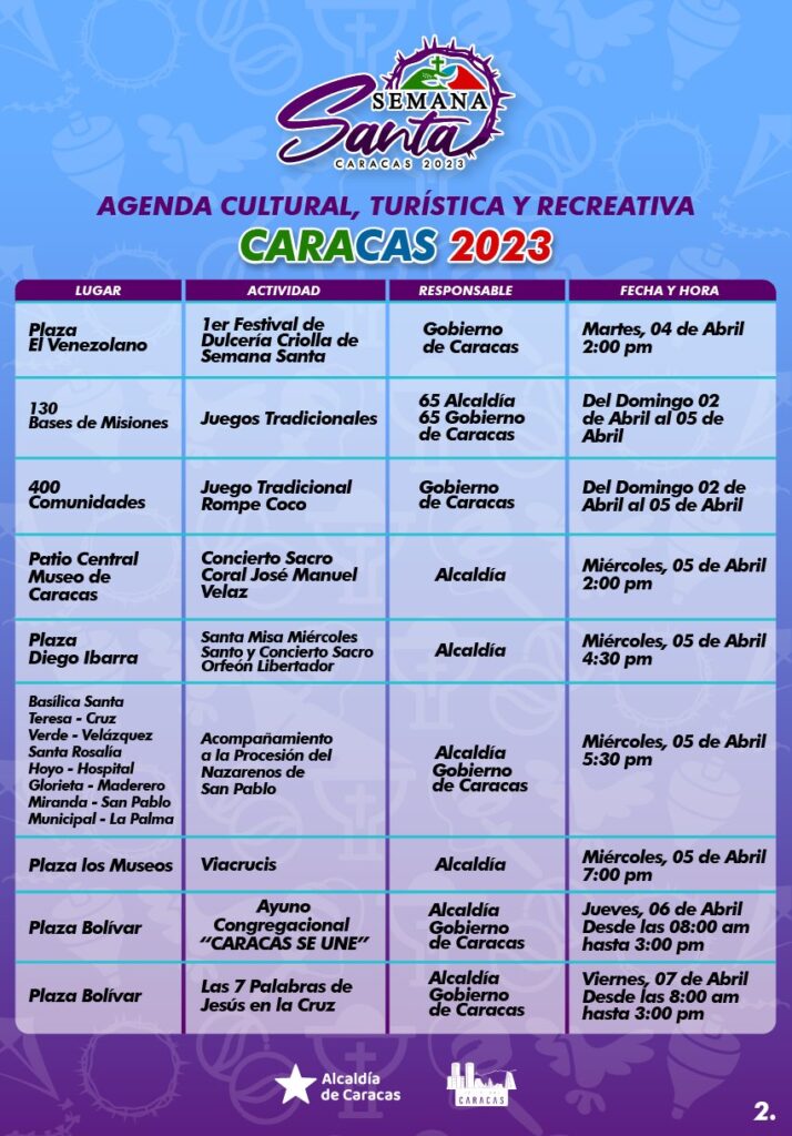 Actividades turísticas, culturales, deportivas y eclesiásticas disfrutarán los caraqueños durante el asueto de la Semana Santa Caracas 2023.