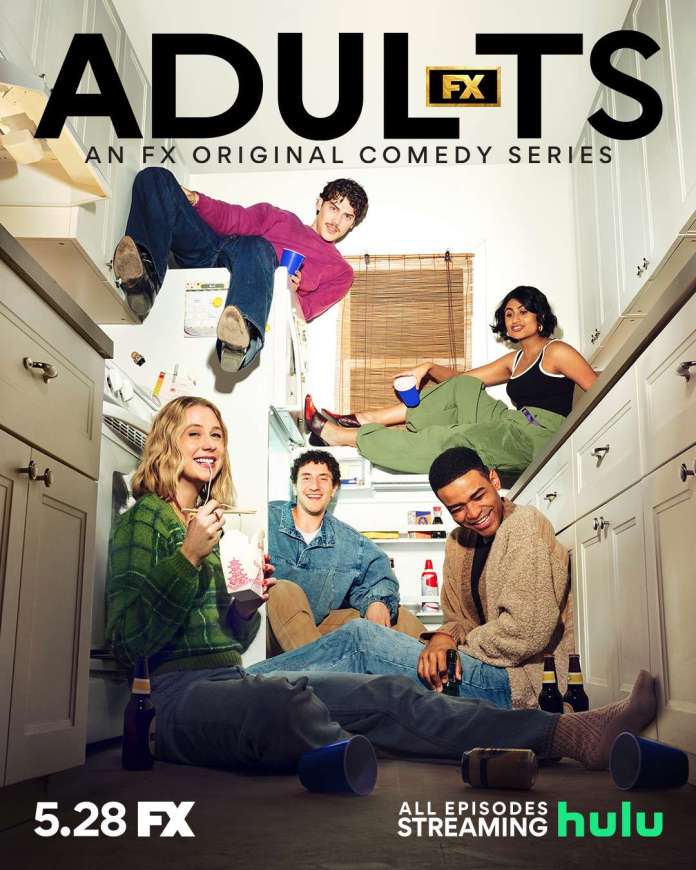 Precisamente, ‘Adults’ sigue la vida cotidiana de cinco amigos (Anton, Samir, Billie, Paul Baker, Issa) viviendo juntos en Nueva York. Tiene un humor bastante afilado que juega con lo absurdo de la vida adulta, mostrando situaciones incómodas y decisiones cuestionables de los protagonistas, quienes se esfuerzan por ser buenas personas y terminan demostrando sus rasgos más alocados e impulsivos.