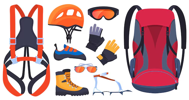 Fuente:https://www.freepik.es/vector-premium/conjunto-equipos-escalada-escaladores-seguro-carabinas-piolet-casco-botas-garras-guantes-deportes-extremos_12593574.htm