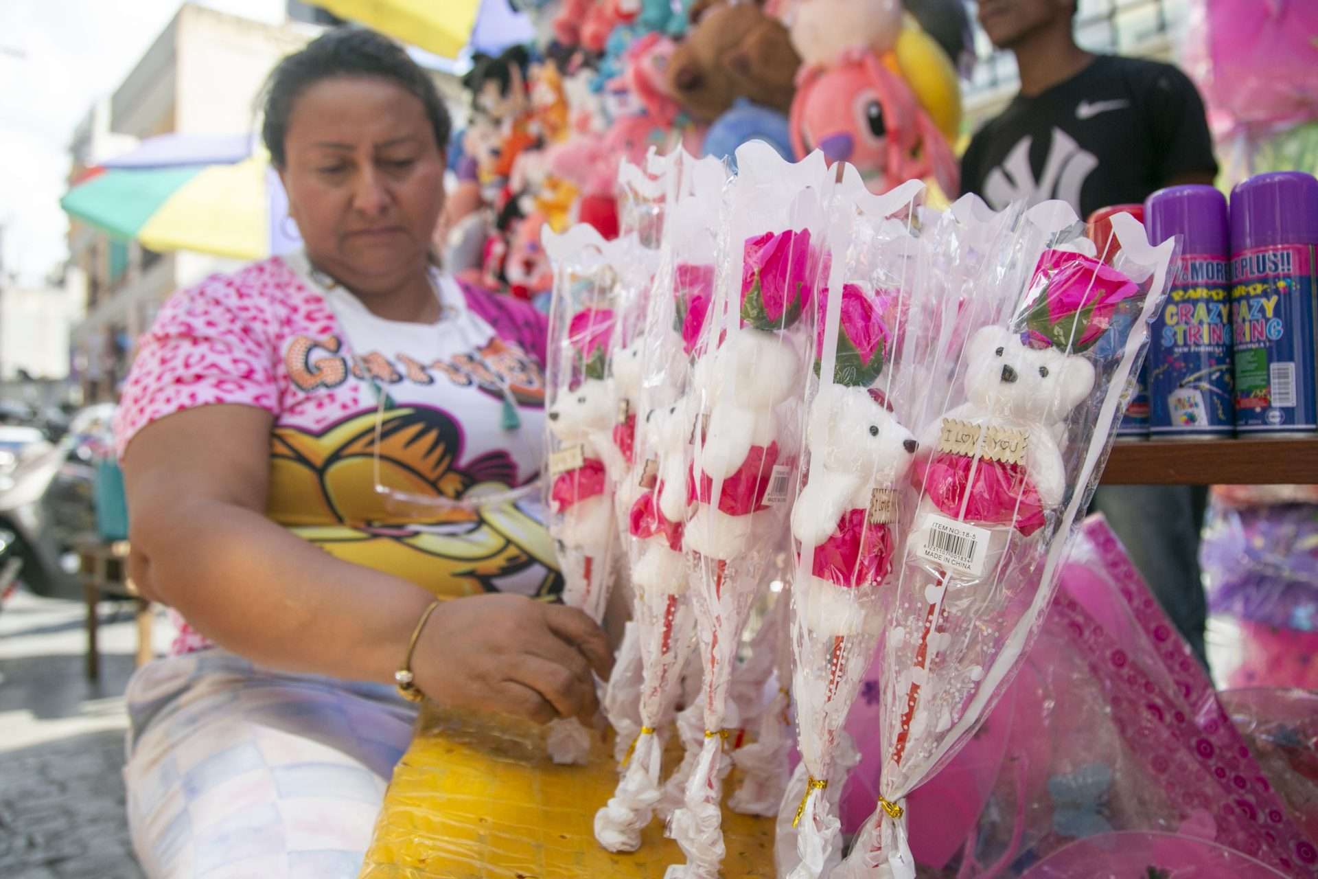 “Por estos productos vienen hombres, mujeres y jovencitas a comprar porque no solamente es el Día de los Enamorados, también es el Día de la Amistad. Entonces, a cualquiera se le puede regalar, ya sea la mamá, una amiga; a quien sea se le da su detallito”, destacó. Los emprendedores tampoco se quedaron atrás con las comercializaciones para este 14 de febrero. Tal es el caso de Belkis Valencillos, quien explicó a UN que ella, su esposo e hijas realizan arreglos con bases de madera y, además, venden las llamadas rosas eternas.