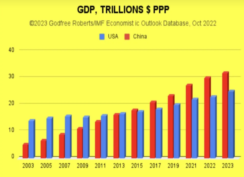 Aunque el G7 permanece como el más potente y cohesivo bloque económico del mundo, su proporción en la producción global en términos de paridad de poder adquisitivo ha descendido de 44 a 30% desde el principio de este siglo. Mientras que la de China ha crecido de 7 a 19 %, convirtiéndola en una superpotencia económica.