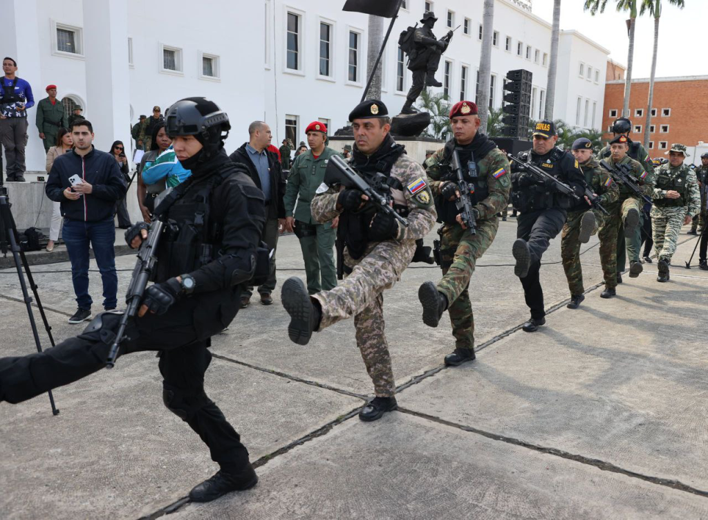 “El Pdte. @NicolasMaduro ha ordenado y ha establecido la estrategia a seguir: la Fusión Popular Militar Policial; y los enemigos internos y externos saben que se van a encontrar con la mayor fuerza: la unidad nacional en función de la patria, la paz y el pueblo”, dijo Cabello este sábado durante el despliegue operacional de las Unidades de Reacción Rápida (Urra) de la Fuerza Armada Nacional Bolivariana (Fanb), evento celebrado en el patio de las academias, enclavada en Fuerte Tiuna.