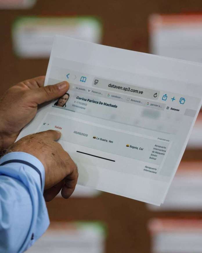Cabello muestra la confirmación de vuelo de la salida de la madre de María Corina Machado desde Maiquetía a Bogotá, Colombia. Foto: Con el Mazo Dando.