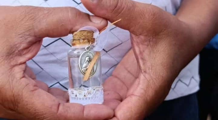Igualmente, los devotos llevaron envases con agua y palmas para ser bendecidas durante el acto.