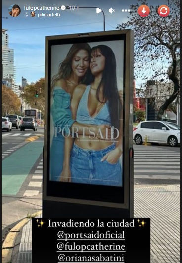 Catherine Fulop compartió orgullosa una de las vallas de la campaña de moda que protagoniza con su hija mayor, Oriana Sabatini. La venezolana y la cantante argentina son la imagen de la temporada otoño-invierno 2023 de la división de jeans de la marca Portsaid.