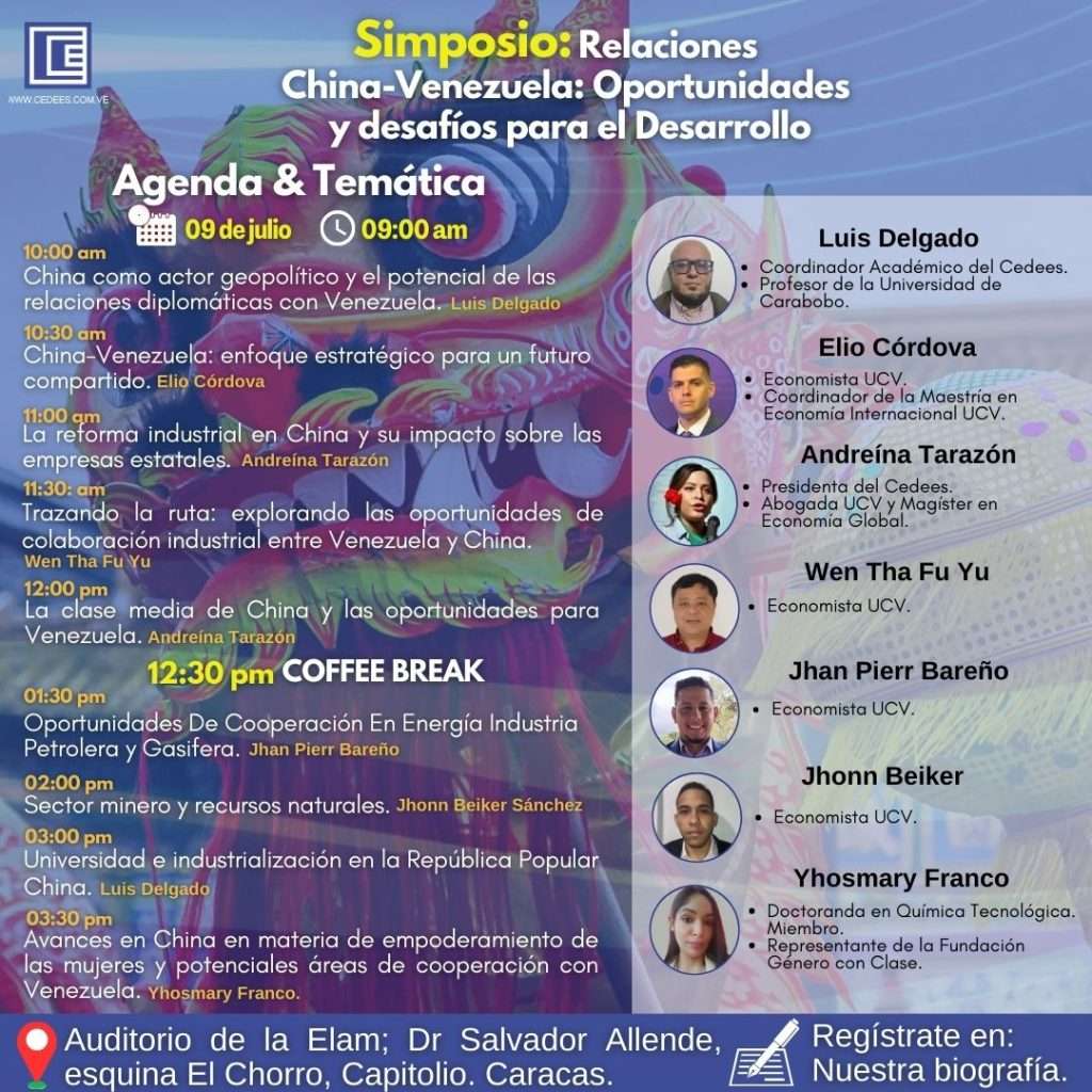 Con motivo de la celebración del 50 aniversario de las relaciones diplomáticas entre la República Popular de China y la República Bolivariana de Venezuela, el Centro de Altos Estudios del Desarrollo y las Economías Emergentes (Cedees) realizará el martes, 09 de julio, el simposio Relaciones China-Venezuela: Oportunidades y Desafíos para el Desarrollo.