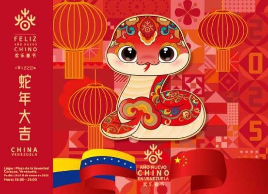 El Año 2025 corresponde a la serpiente según el calendario lunar de China. De acuerdo con la cultura china, la serpiente representa la sabiduría, la fortuna, la longevidad y la felicidad. Según la cultura venezolana, la serpiente simboliza la vida, la custodia y la fuerza. China está dispuesta a trabajar con Venezuela para promover la amistad y la cooperación, mejorar el aprendizaje mutuo entre culturas y construir una comunidad de un futuro compartido de la humanidad.