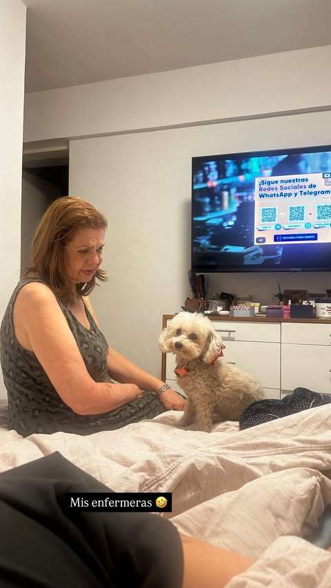 «Estoy de reposo, con un dolor manejable», reveló también la animadora, que también compartió una foto con su mamá y su perrita, a las que denomina sus «enfermeras».