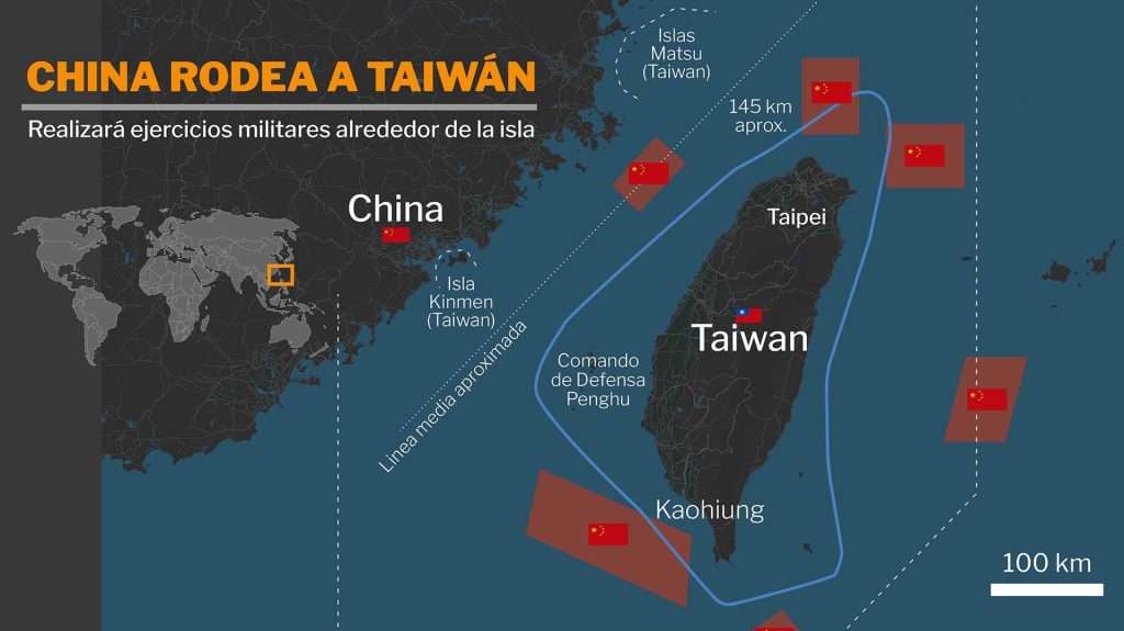 China rodea a Taiwán con ejercicios militares tras provocación política