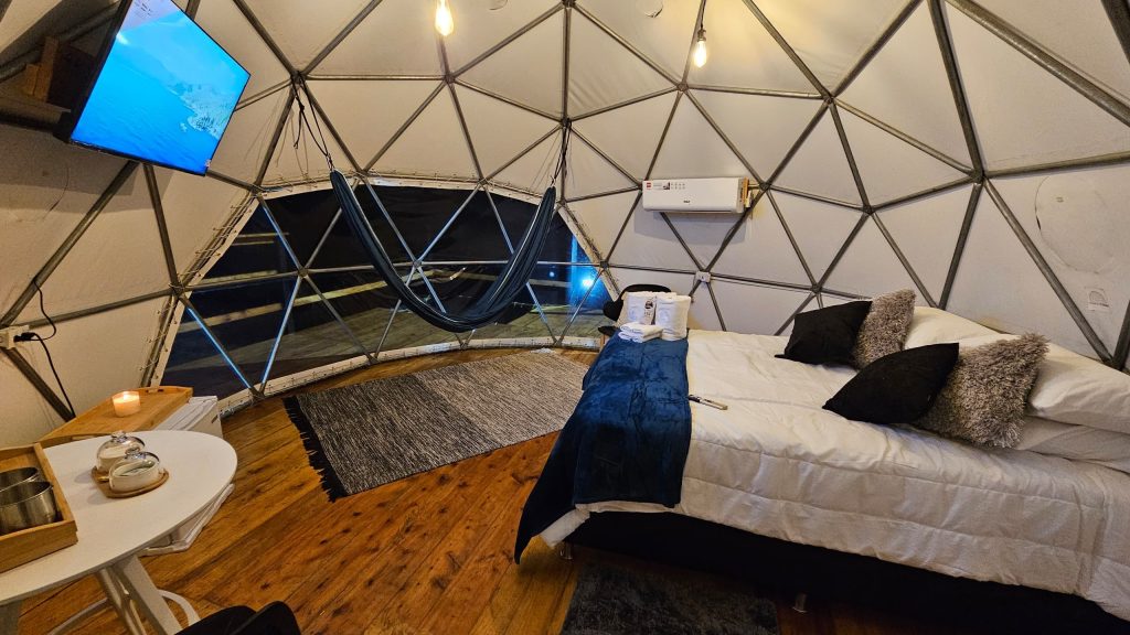 La estadía en el domo incluye el disfrute de la ruta de canyoning en las cascadas, lanzamiento en tirolesas, escalada en el muro, atención y contacto con las diversas especies que están resguardadas en el zoológico, desayunos con la mejor vista a la sierra nevada. Además, hay opciones extras como sesión de fotografías con tus animales preferidos, jacuzzi climatizado y souvenirs de zona glamping.