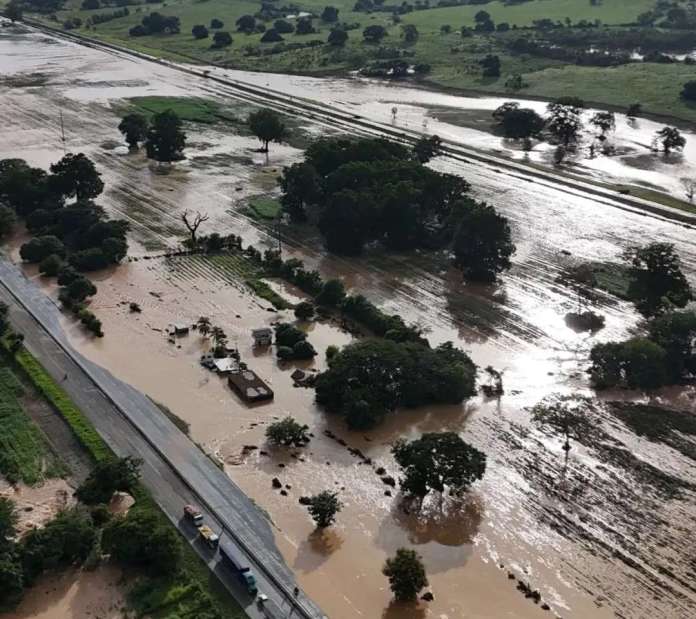 Indicó Protección Civil que el tránsito automotor está interrumpido tanto por la autopista como por la Troncal 05 (carretera vieja), a la altura de las fincas La Garrapatera y El Esfuerzo, en Ospino.