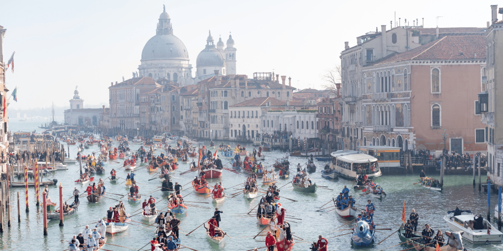 El Carnaval de Venecia, de raíces medievales, se distingue por su elegancia y sus trajes de época del siglo XVII, además de los impactantes barcos que circulan por el Gran Canal. Se celebrará del 16 de febrero al 4 de marzo.