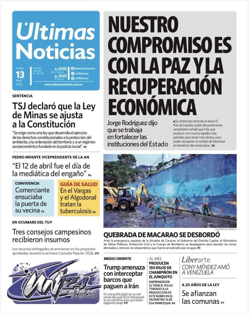 Así arranca tu semana. Recuerda que para mantenerte al día, todo el día, lo único que tienes que hacer es conectarte con ultimasnoticias.com.ve, (@UNoticias) en X, TikTok, Threads, Facebook, Instagram, LinkedIn y también en nuestro canal de Telegram (@UNoticias). Te invito además a ¡leer el diario impreso! Busca ya tu ejemplar de Últimas Noticias.