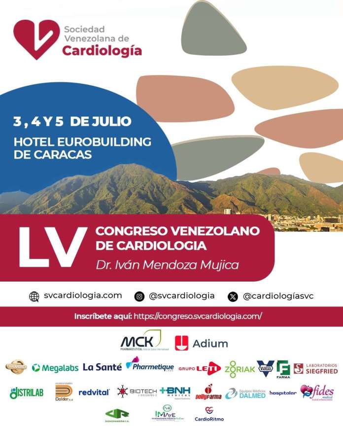 Más de 100 expertos nacionales e internacionales participarán como ponentes en la edición 2025 del Congreso Venezolano de Cardiología, que tendrá lugar en Caracas del 3 al 5 de julio próximos.