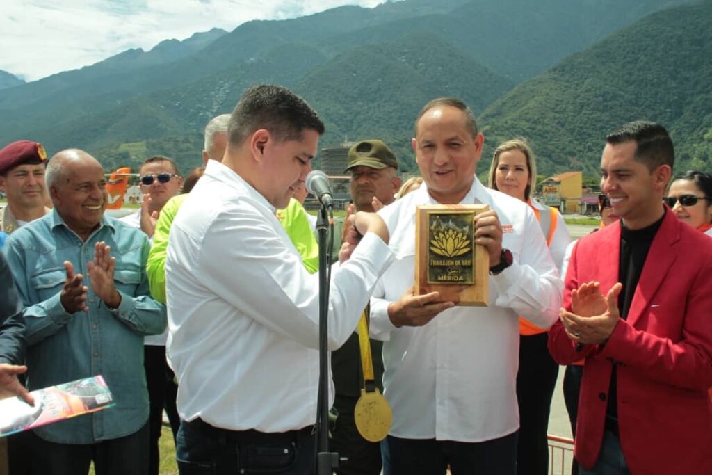 “Hoy le entregamos un símbolo de este hermoso paisaje, de la sierra Nevada que está al fondo con la aeronave de Conviasa, la tierra majestuoso de las Cinco Aguilas Blancas de Don Tulio Febres Cordero, reciba este premio”, expresó el mandatario regional.