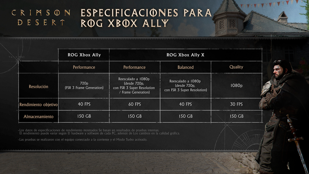 Y por último pero no menos importante, Pearl Abyss también ha revelado las especificaciones para jugarlo a través de la consola portatil Rog Xbox ally y Rog Xbox Ally X, donde la versión más potente podrá disfrutar esta experiencia a 60 FPS con un reescalado a 1080p.