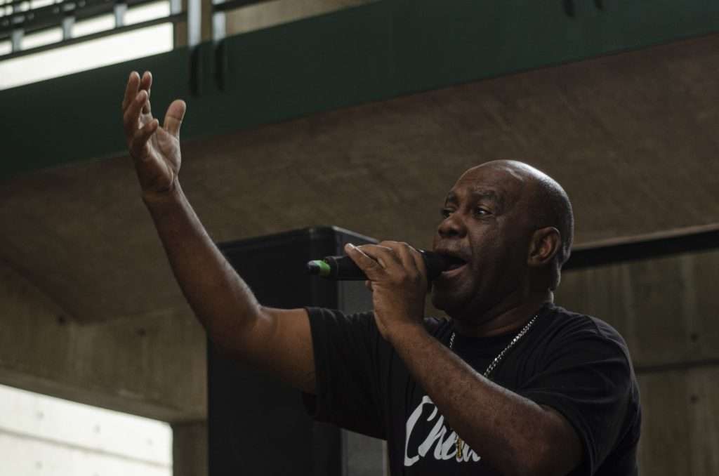 “Ave María, Ave María, San Juan Bautista hoy es tu día”, fue uno de los cantos que acompañó el público en la muestra y taller dedicado a las tradiciones de las comunidades Cumboto, Turiamo, Ocumare de la Costa, Cata, Cuyagua, Choroní, Chuao y Puerto Maya.