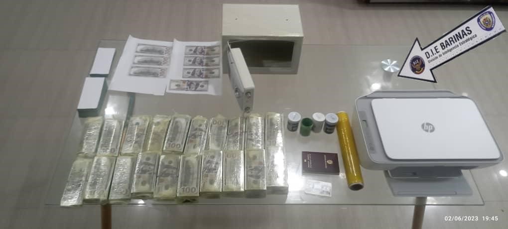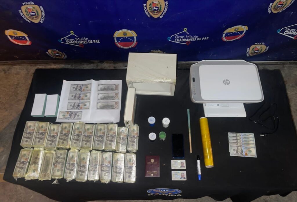Al momento de la aprehensión se les incautaron una caja fuerte, 200 mil dólares falsos, una impresora y un celular. El caso pasó a la Fiscalía correspondiente del Ministerio Público.