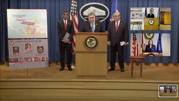 Este anuncio que, además del Presidente, incluía a varios dirigentes del Gobierno, fue adornado por carteles donde se ofrecía una recompensa de 15 millones de dólares por la captura del jefe de Estado venezolano, esto sin que hasta el momento se hubiese presentado prueba alguna sobre estas acusaciones más allá del discurso donde Barr aseguraba que “Maduro es el líder de una organización criminal conocida como el Cartel de los Soles”.