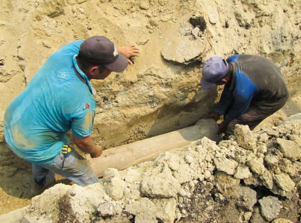 La clase trabajadora de la hidrológica hizo la excavación y retiro del tubo deteriorado para instalar el nuevo ducto de 8 pulgadas. Allí efectuaron labores de soldadura y colocación de una junta mecánica.