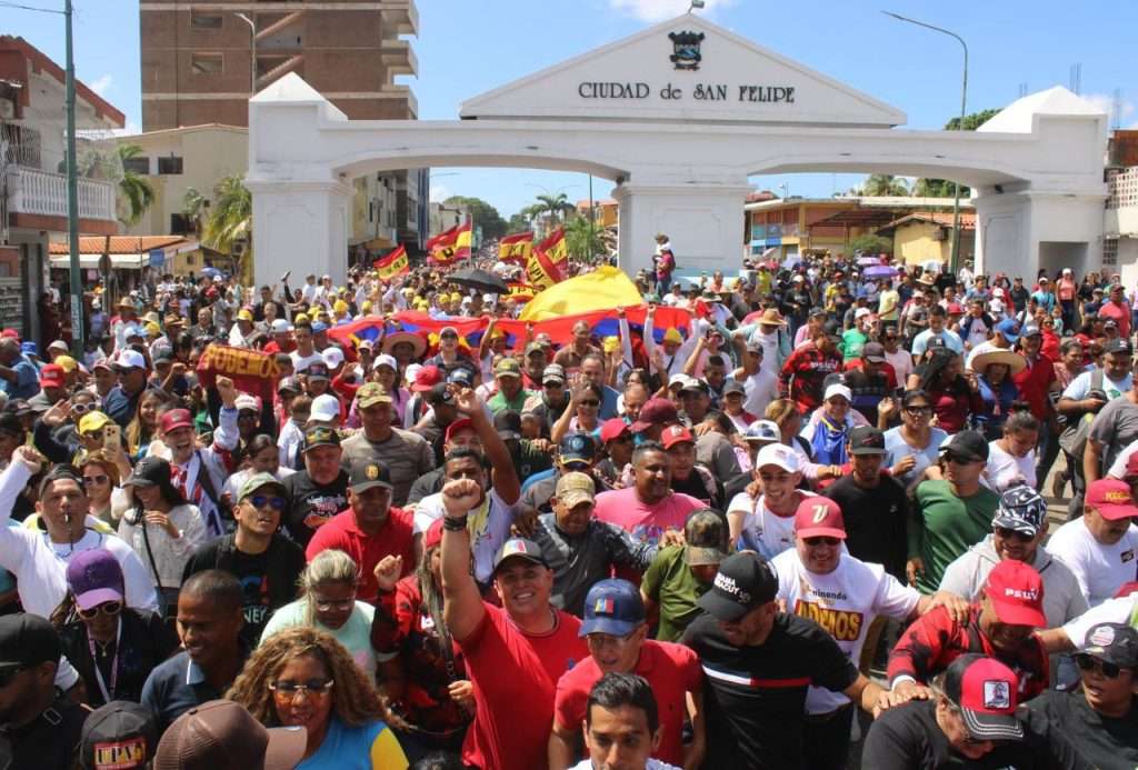 La caminata, que inició en la plaza Sucre del municipio San Felipe y se concentró en una tarima instalada frente a la plaza Bolívar de San Felipe, estuvo dirigida por el coordinador estadal del Partido Socialista Unido de Venezuela (Psuv), Julio León, y representantes de los partidos de las fuerzas revolucionarias.