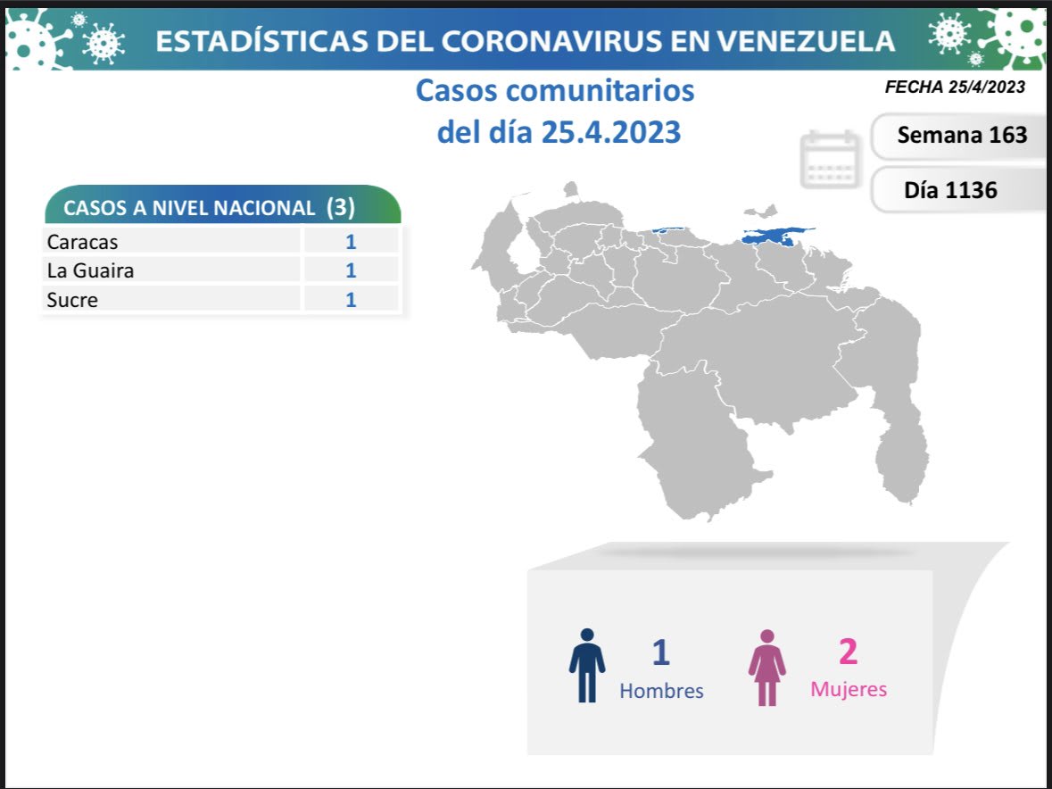 Este miércoles la vicepresidenta de la República, Delcy Rodríguez, ofreció el balance de casos de covid-19 registrados este martes, señalando la detección de tres nuevos contagios en todo el país.