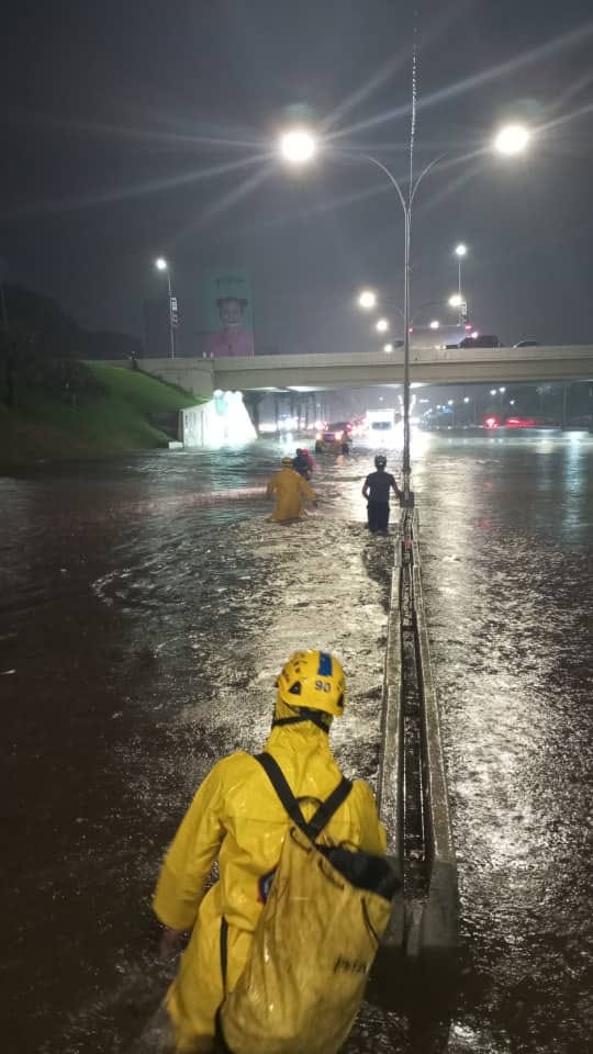 Tremendo palo de agua cayó anoche en Caracas y la autopista Guaicaipuro, por donde está el distribuidor Altamira, se inundó seriamente. Mira como estaba eso, de verdad es impresionante: