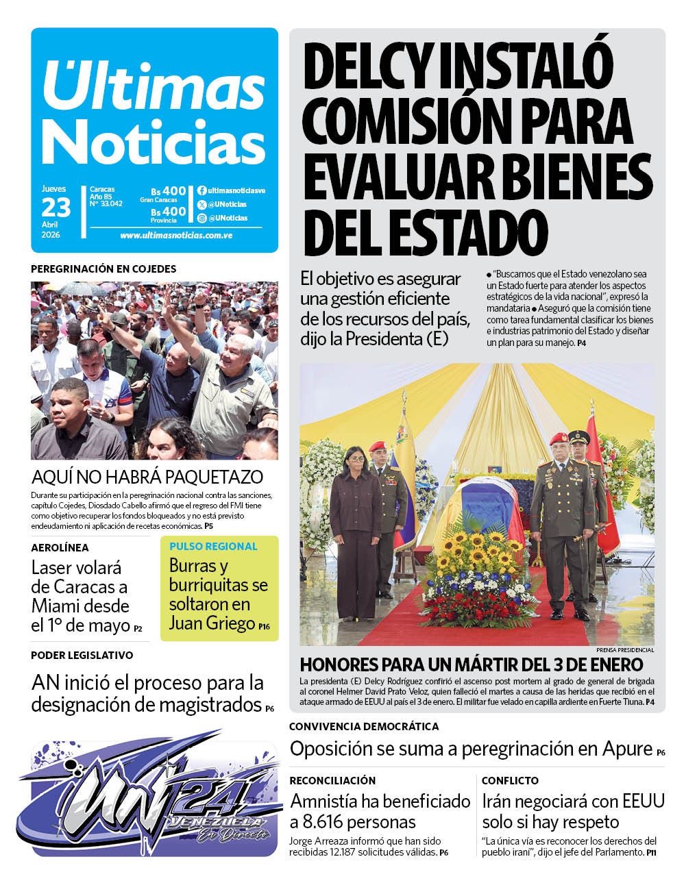 Vamos pa’lante, mi gente. Recuerda que para mantenerte al día, todo el día, lo único que tienes que hacer es conectarte con ultimasnoticias.com.ve, (@UNoticias) en X, TikTok, Threads, Facebook, Instagram, LinkedIn y también en nuestro canal de Telegram (@UNoticias). Te invito además a ¡leer el diario impreso! Busca ya tu ejemplar de Últimas Noticias.