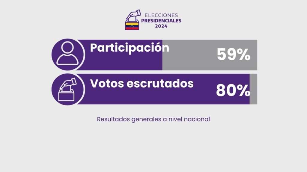 A las 12 de la noche el CNE hizo público el primer boletín oficial de los resultados de la elección presidencial con 80% de transmisión de datos y tendencia irreversible. ¿Y quién ganó? El presidente Nicolás Maduro se impuso con 5.150.092 votos para un 51,20% de los votos. En segundo lugar llegó el candidato de la MUD, Edmundo González, con 44,2% o 4.445.978 votos.