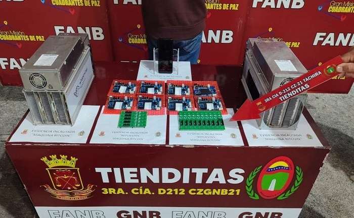 La Guardia Nacional Bolivariana (GNB) incautó en Tienditas (Táchira), equipos de minería digital, según fuentes militares.