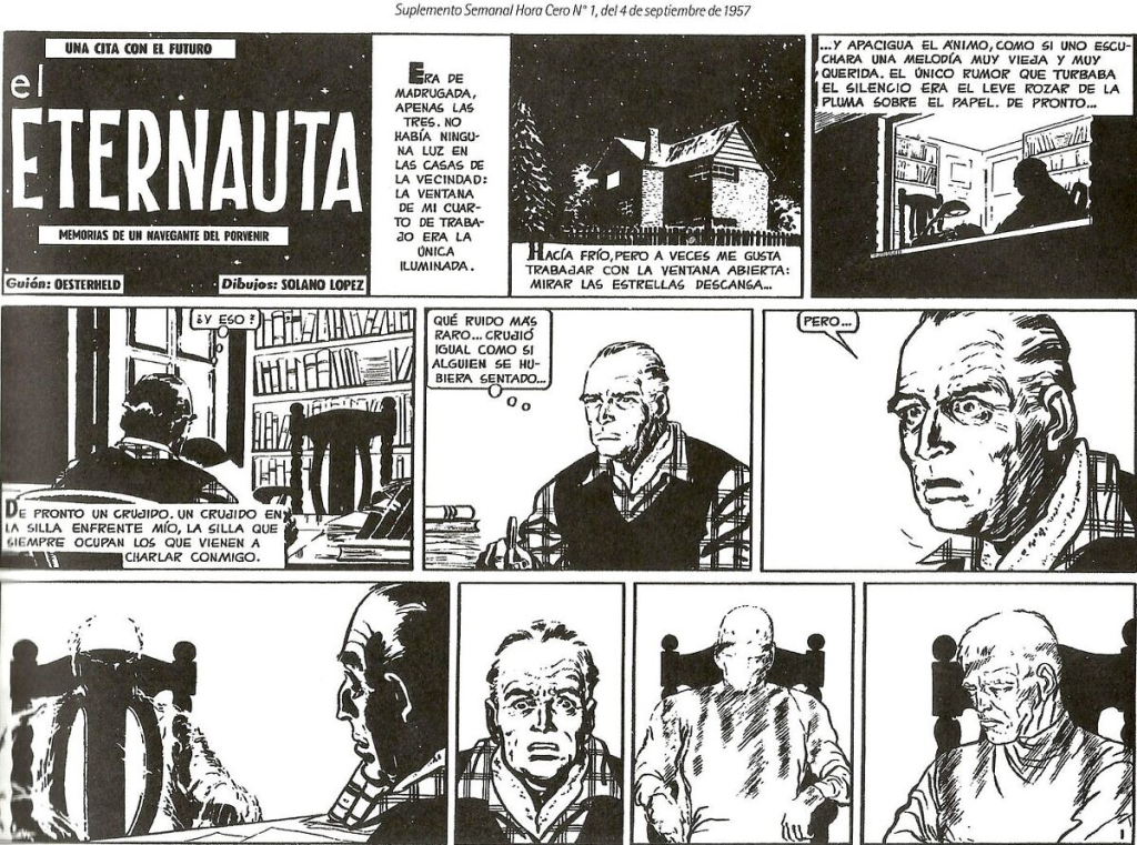 En los años 50, Oesterheld irrumpió en la escena de las historietas argentinas, colaborando con la Editorial Abril y fundando, junto a su hermano Jorge, la Editorial Frontera. Revistas como Hora Cero y Frontera se convirtieron en el lienzo donde plasmó su talento. Con un estilo que combinaba acción, profundidad psicológica y crítica social, creó obras que rompieron moldes: Sargento Kirk (con Hugo Pratt), Ernie Pike y, sobre todo, El Eternauta (1957-1959), ilustrada por Francisco Solano López, una epopeya de ciencia ficción que narraba una invasión extraterrestre en Buenos Aires con un trasfondo profundamente humano.