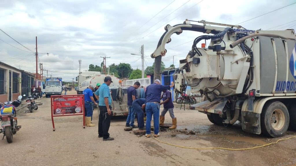 En el municipio Ricaurte, el personal de la Hidrológica, ejecuta, con el Camión Vacum Hidrojet, el mantenimiento a más de 10 colectores, 12 bocas de visita y la demarcación de tramos a sustituir en los próximos días.