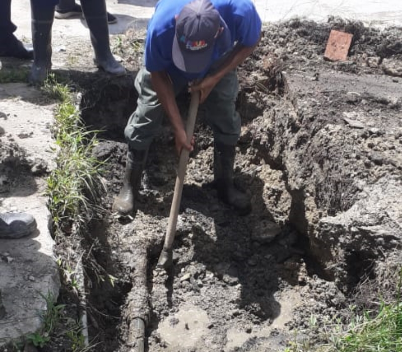En el lugar se realizaron una serie de excavaciones que permitieron descubrir las tuberías y ubicar la obstrucción, procediendo a realizar las labores necesarias para reactivar el servicio.