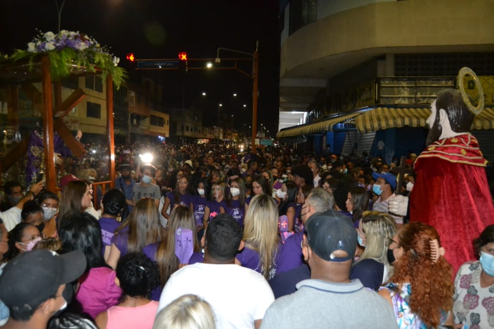 El recorrido por las distintas estaciones estuvo cargado de gran religiosidad y emotividad de la multitud presente a lo largo de todo el trayecto, muchos de ellos vestidos con el tradicional color violeta que representa la túnica que Jesucristo portaba cuando fue sometido y crucificado por el imperio romano.