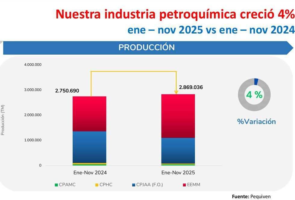 Al respeto, Rodríguez destacó que la industria petroquímica creció en un 4%, mientras que la producción de fármacos en un 29,6% y el crecimiento de la misma en unidades fue de un 17,6%, durante el año 2025.