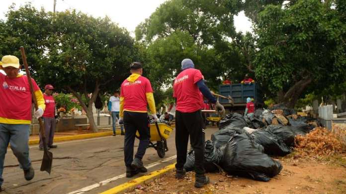 Di Martino detalló que limpian varios puntos de la ciudad con una flota de camiones que llegó por asignación del Gobierno Nacional y apoyo de unidades de la Gobernación del Zulia, que incluye trabajadores conocidos como “salserines”.