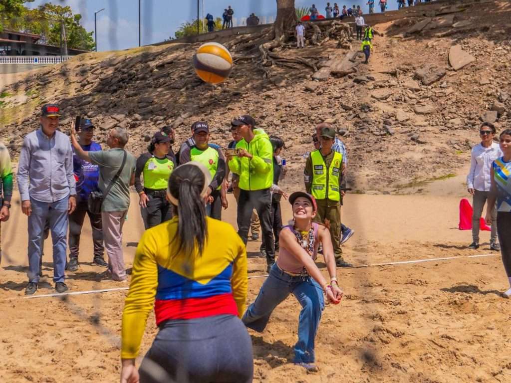 Durante la jornada, Cabello conoció de cerca la cultura bolivarense y visitó el conocido playón de la Cocuyera, donde la gobernadora García y el alcalde Sergio Hernández jugaron un partido de voleibol de playa.