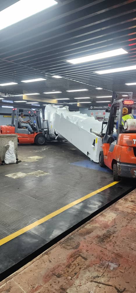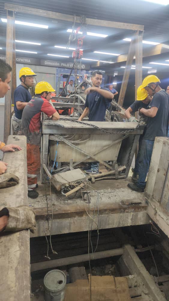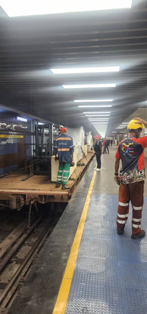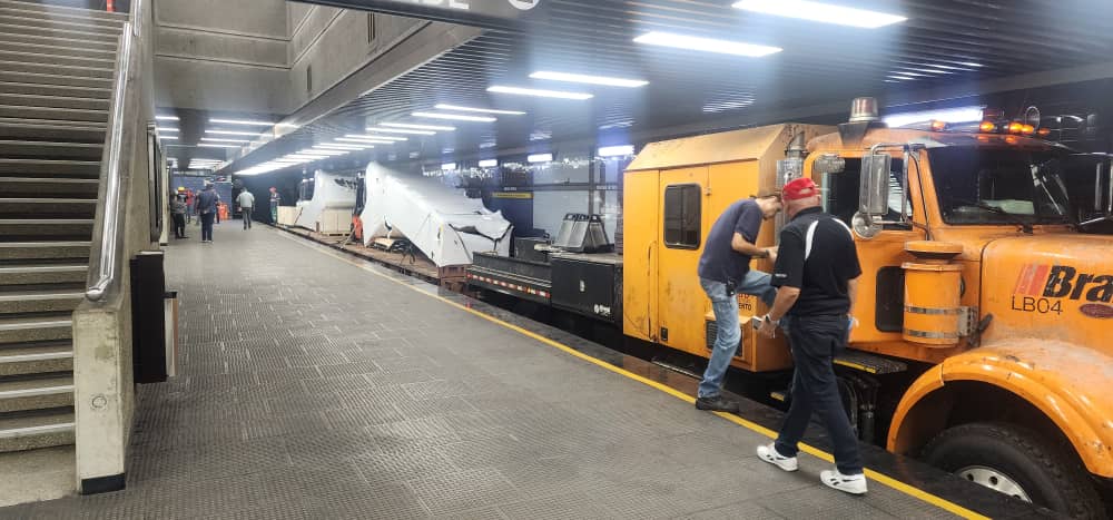 A través de un vehículo bivial con grúa, que moviliza al vagón plano, los técnicos especializados del Metro de Caracas trasladaron las nuevas escaleras mecánicas desde los patios del Metro de Caracas, ubicados en Propatria, que se instalarán en la estación, refiere el post del sistema de transporte.