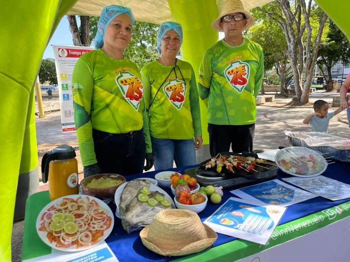 Durante la actividad, el especialista Marco Franco, representante del INN, destacó la importancia de consumir alimentos autóctonos como el pescado, preparado de manera saludable. Durante la jornada se preparó una receta de pescado en brochetas, acompañado de ensalada de tomate margariteño, puré de batata y una bebida refrescante de auyama y piña.