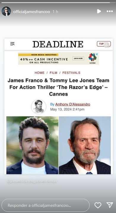 “Estoy encantado de haber fichado a los talentosos actores James y Tommy Lee para llevar ‘The Razor’s Edge’ a la gran pantalla. Están perfectamente capacitados para encarnar a los protagonistas”, dijo en un comunicado a Deadline Corey Large, productor de la cinta.