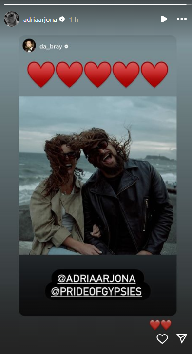 Por su parte, Adria, de 32 años, también compartió una fotografía junto al actor de 44 años en sus historias de Instagram. La acompañó de varios corazoncitos.