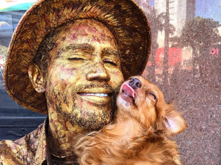 Jorge Luis, un artista venezolano que emigró a Brasil hace más de diez años buscando nuevas rutas, jamás imaginó que en ese viaje encontraría a Jasper. Ella no solo se convirtió en su amiga fiel, sino en parte esencial de su arte como estatua viviente.