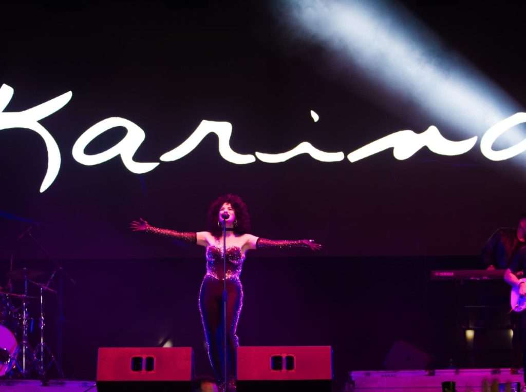 Lo que comenzó con buen pie, con sonido impecable en las mezclas de los DJ y en las presentaciones de covers de los artistas Thalía Samarjian y Zarik Medina, luego se perdió con el espectáculo de Karina, la más esperada por todos sus seguidores, en los alrededores de la plaza Francia de Altamira.