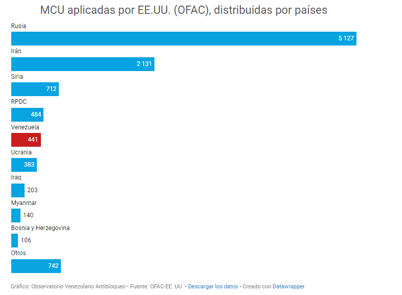 Ofac. La Oficina de Control de Activos Extranjeros, dependiente del Departamento del Tesoro de Estados Unidos, es la agencia sancionadora mundial. Ha aplicado 10.469 medidas coercitivas unilaterales (35%) contra 30 países, incluyendo a Venezuela.