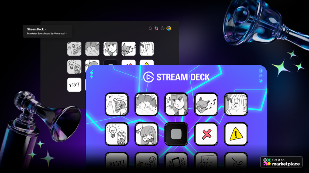 Por otra parte, los usuarios de Stream Deck ahora pueden adquirir soundboards completos de Voicemod directamente en Marketplace. Cada uno incluye memes y clips de sonido, con temáticas que van desde la fantasía hasta los juegos FPS. Se instalan directamente en Stream Deck como perfiles listos para usar, sin configuración manual ni necesidad de la aplicación Voicemod. Actualmente, los soundboards están optimizados para diseños de Stream Deck de 15 teclas, y con el tiempo se añadirán más temáticas y compatibilidad con otros dispositivos.
