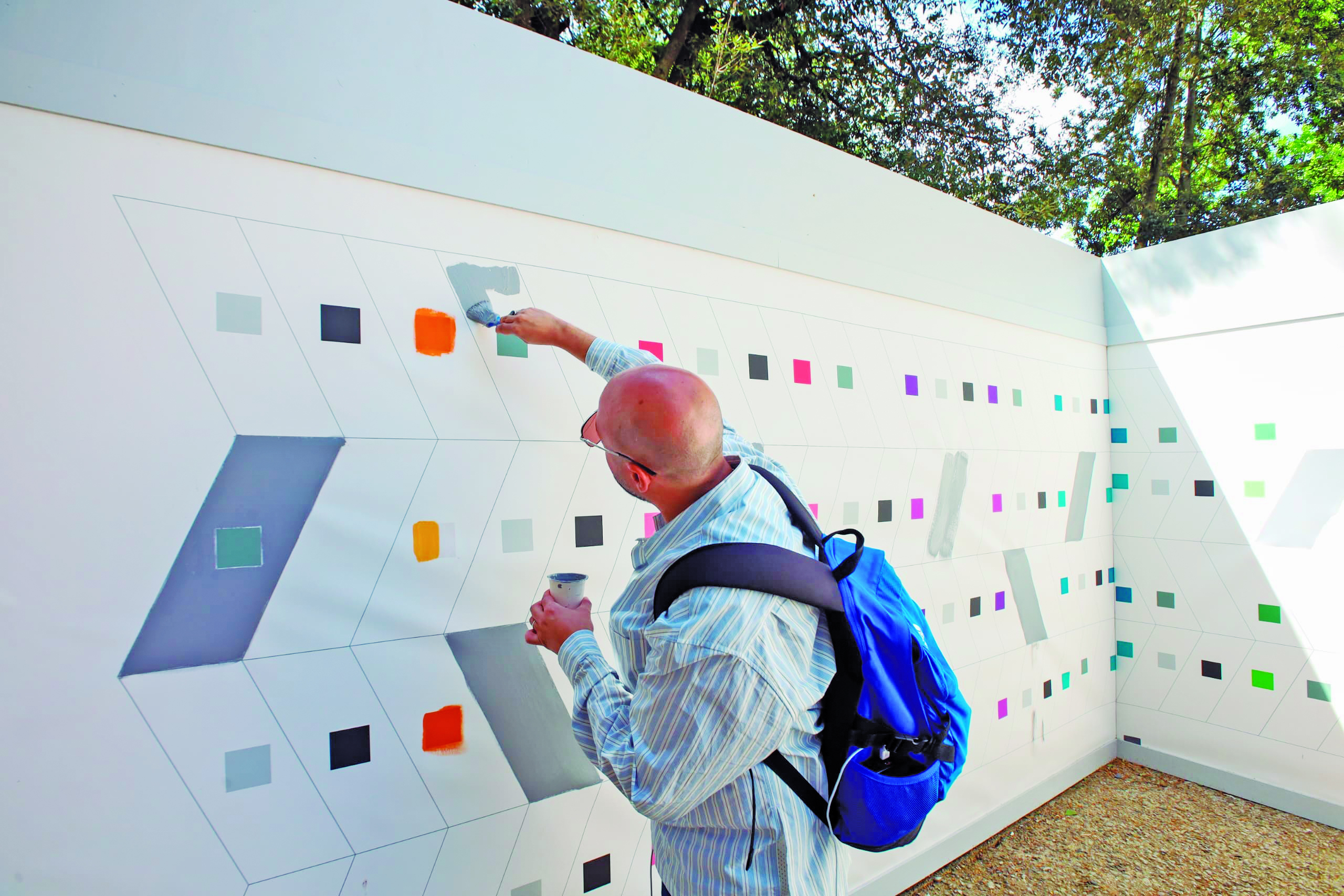¿Cuál es el motivo que se pintará? El artista cuenta que se trata de la geometría que utiliza en la idea cinética para producir la ilusión óptica, “que es lo que expresa la parte de mi estilo dentro del cinetismo”.